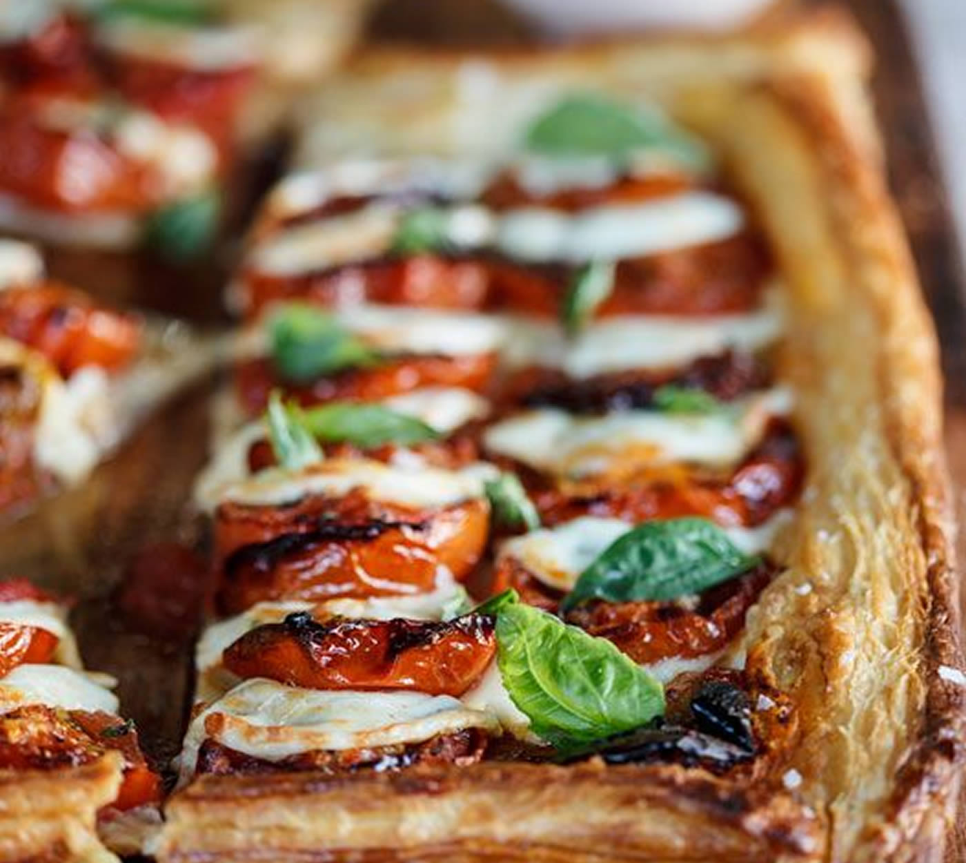 Disponete i pomodori sul fondo della sfogliata e poi aggiungete le mozzarelline.